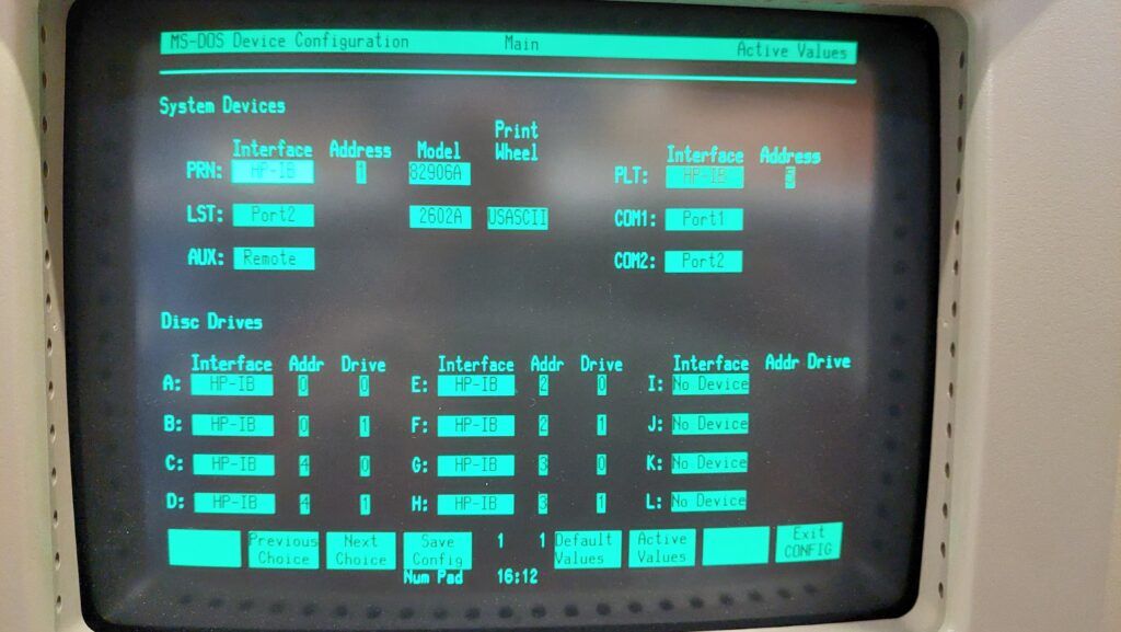 Devices need to be configured using “Device_Config” on the system disk. The boot drive is fixed as HPIB address 0 drive 0. This is drive A:. For the 9121 unit, drive 1 is B:.