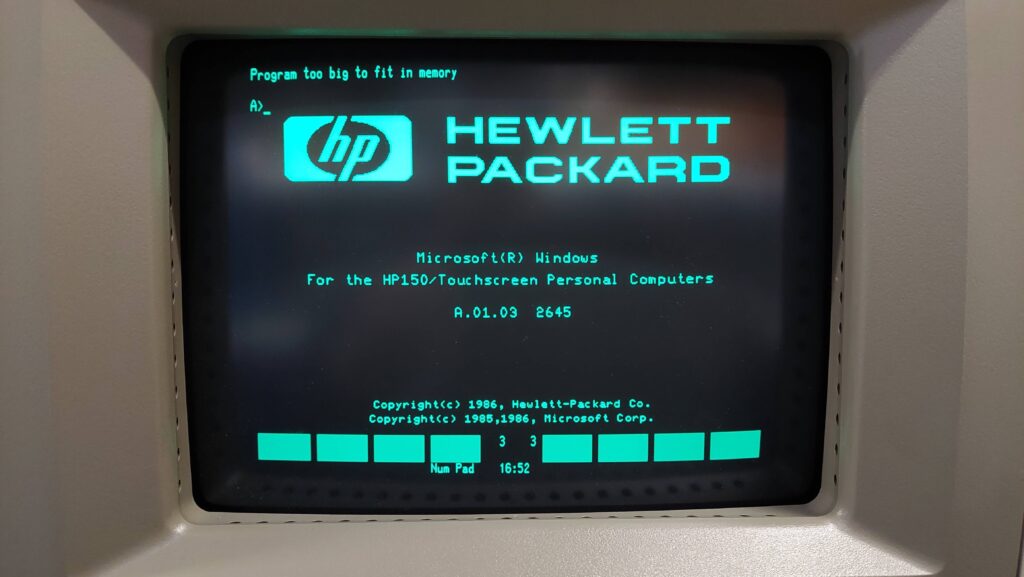 Also note that some disks require Windows, which does run on the HP 150, but not on my HP 150 because of insufficient memory.