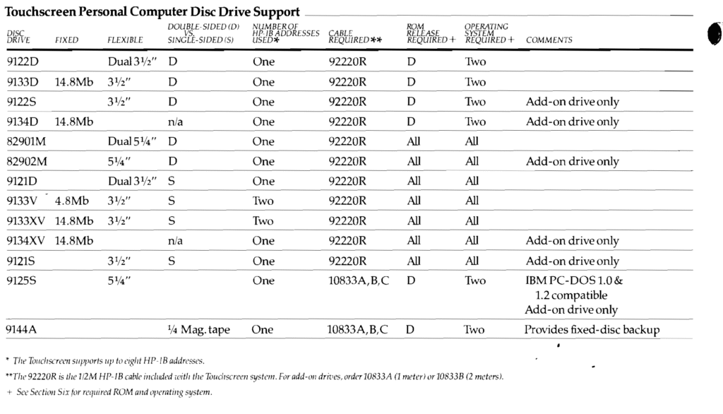 The system disks use MS-DOS 2.01, but don’t have the full collection of programs that would normally come with the OS. The Owner’s Guide indicates that some programs are relegated to the Programmer’s Pac disk. This disk image does appear to be on the HP Computer Museum site, but the image is corrupt.
